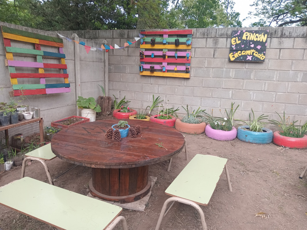 En nuestro "Rincón encantado" hemos creado un lugar lleno de color y alegría, hecho con nuestras propias manos. Aquí encontrarás espacios para relajarte, clases al aire libre, un sector de naturaleza que regala belleza con flores y ornamentales, y un rincón de huerta pensado para compartir y disfrutar con la comunidad.